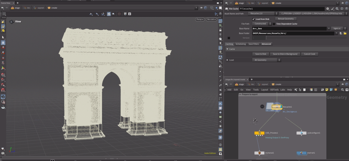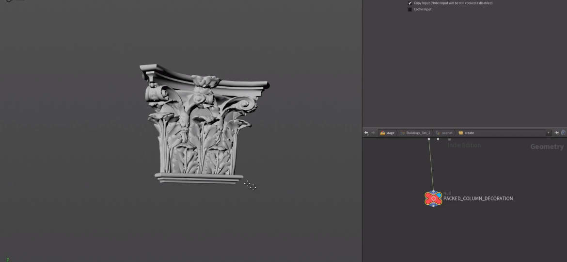 A Sketchfab photogrammetry scan was imported and refined in Houdini to eliminate noise and fill in missing regions. Lower arch geometry was remodeled from scratch, UV-mapped and additional texturing was then applied in Substance Painter.