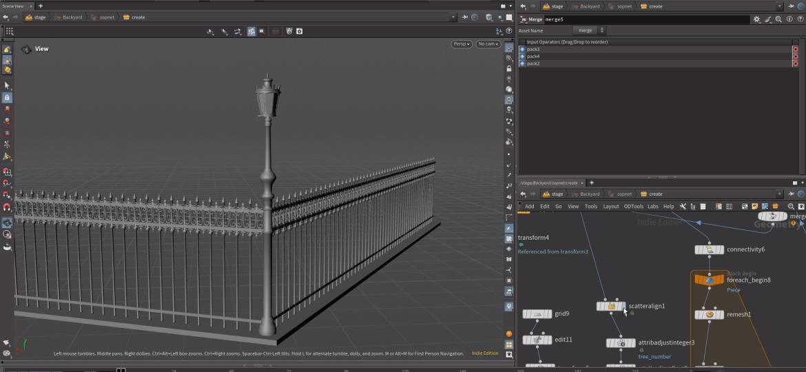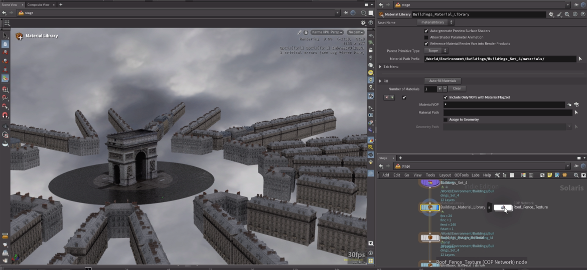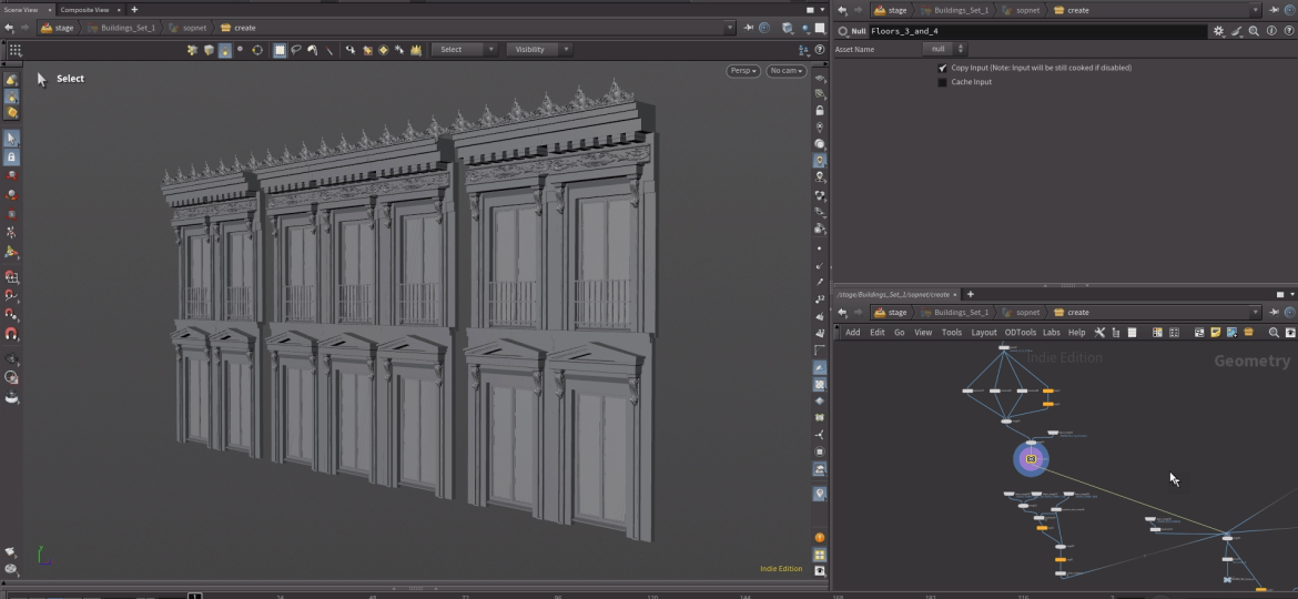 Structures were assembled purely from Megascans architectural kits and custom HDAs for procedural assembly.